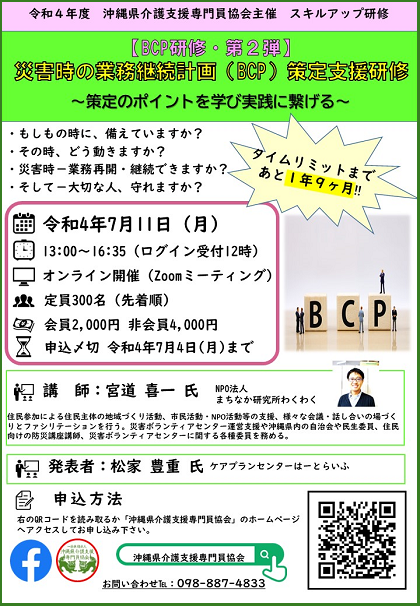 『【BCP研修・第2弾】 災害時の業務継続計画(BCP)策定支援研修 ~策定のポイントを学び実践に繋げる~』を下記の日程で開催いたします。