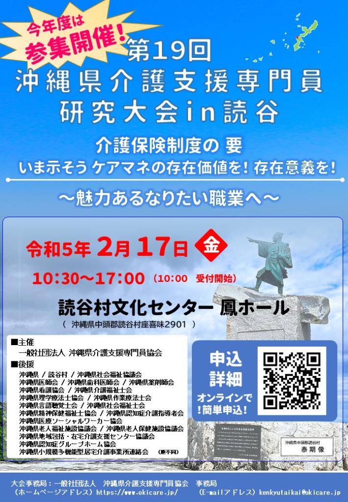 『第19回 沖縄県介護支援専門員研究大会 in 読谷』を下記の日程で開催いたします。