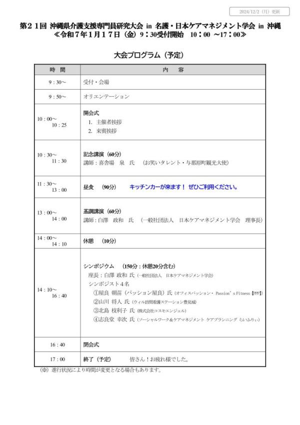 『第21回 沖縄県介護支援専門員研究大会 in 名護 ・ 日本ケアマネジメント学会 in 沖縄 』