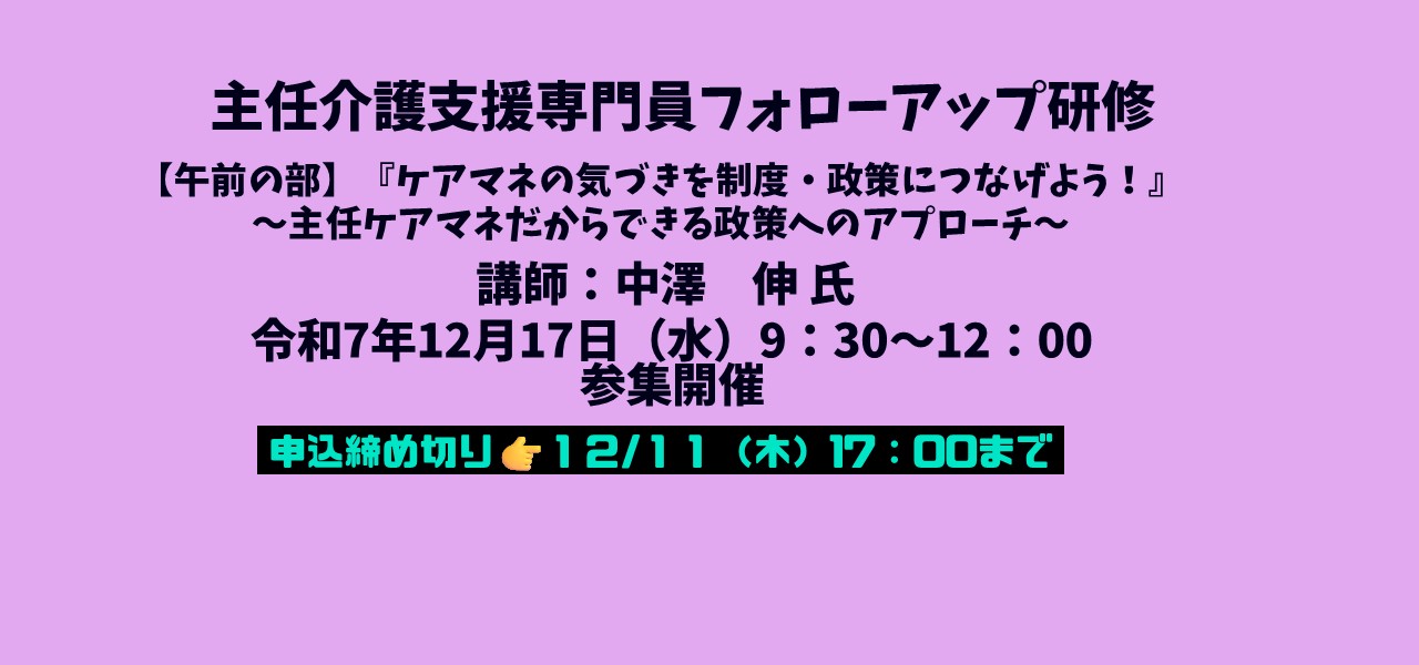 主任介護支援専門員フォローアップ研修(12/17午前の部)